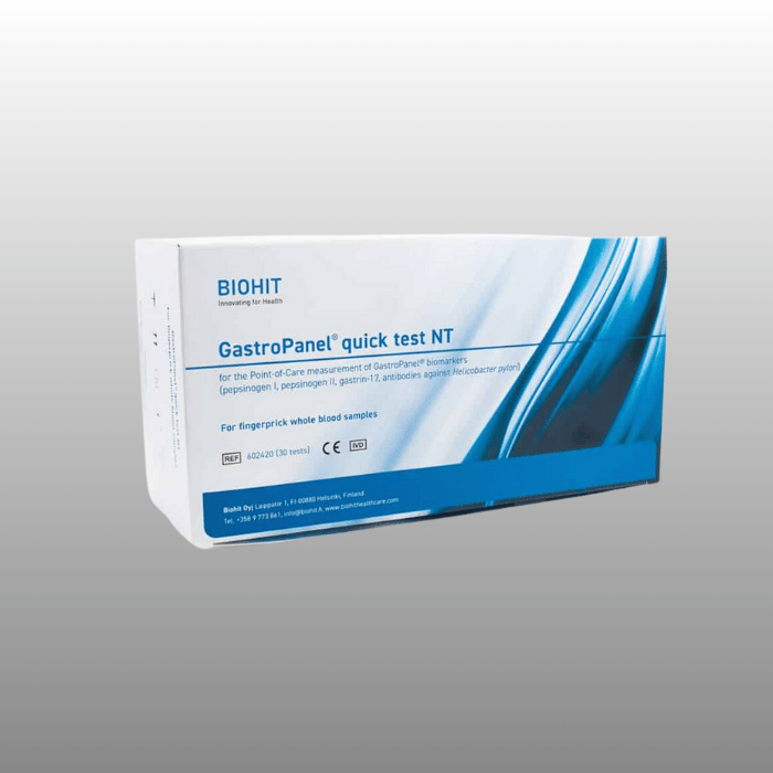 Biohit GastroPanel is a non-invasive diagnostic test designed to assess the health status of the stomach by measuring specific biomarkers in blood serum. It evaluates levels of pepsinogen I, pepsinogen II, gastrin-17, and Helicobacter pylori antibodies, providing valuable information about gastric function, atrophic gastritis, and the risk of gastric cancer. As an evidence-based tool, GastroPanel is widely used in gastroenterology for early detection, risk stratification, and patient management, reducing the need for unnecessary endoscopic procedures.