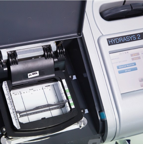 The multifunctional HYDRASYS 2 SCAN FOCUSING analyzer allows simultaneous sample analyses on one gel. Coupled with the ASSIST sample application, migration, washing, staining and scanning are performed on-board automatically in order to quantify the protein fractions.